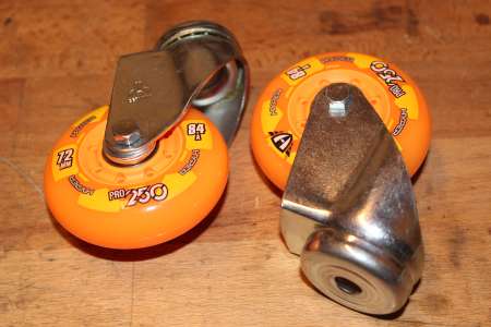 From the steering rollers I'm only going to use the frame and the upper bearing. The 608 ball bearing as well as the spacers get pushed in the skate wheels.