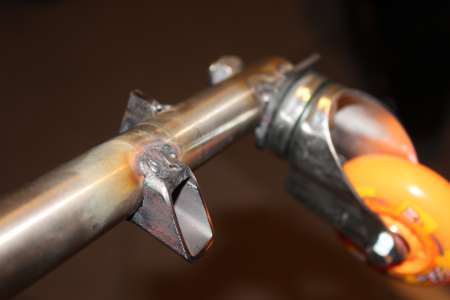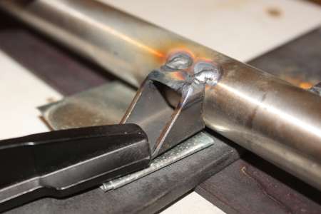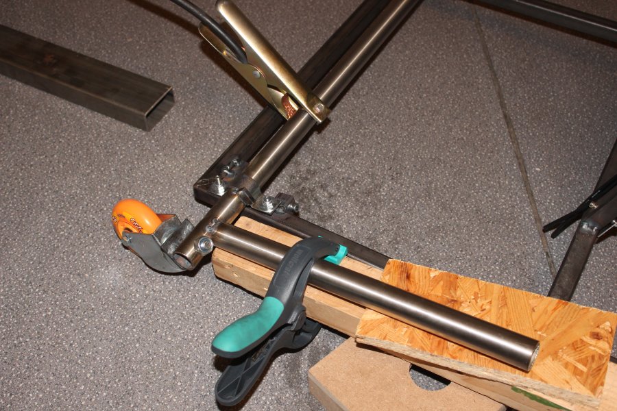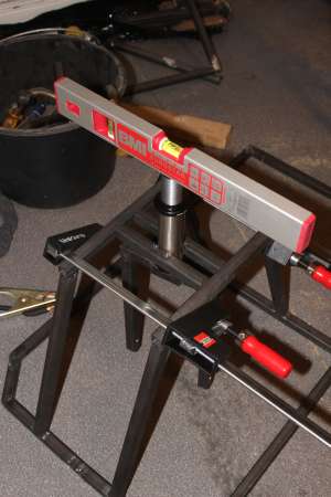 A bubble level helped by aligning the tube to the frame and clamping it in place so I can weld it together.