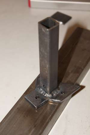 A steel plate with three holes to attach the steering wheel gets welded to the steel section.