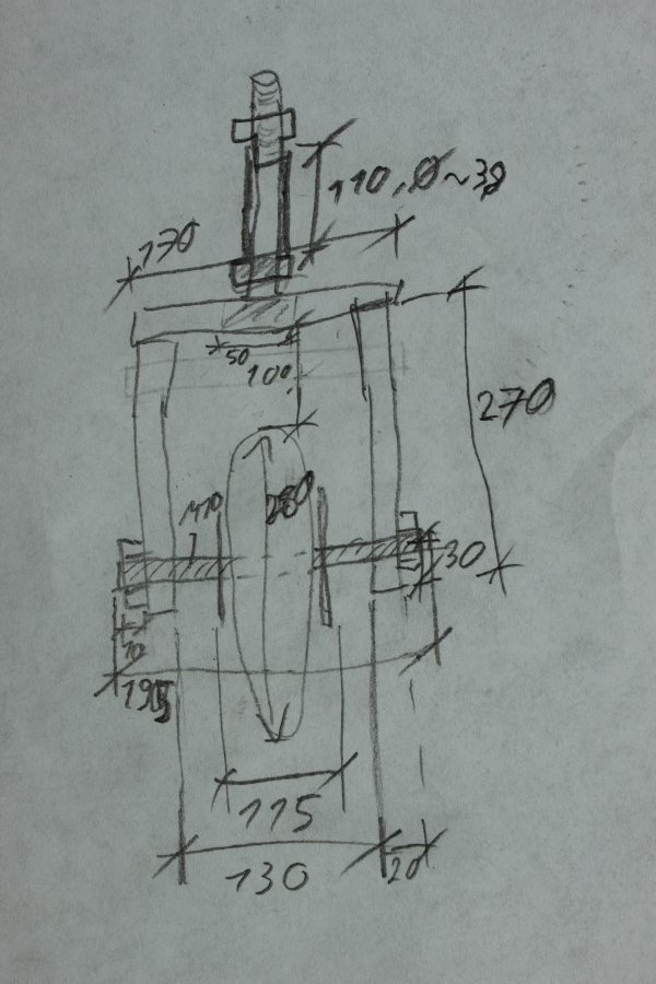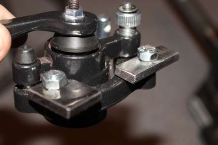 For the upper part of the backwheel assembly to be mounted firmly, it needed to sit flat on a small piece of steel (40x40mm) and fixed by a M10 screw.