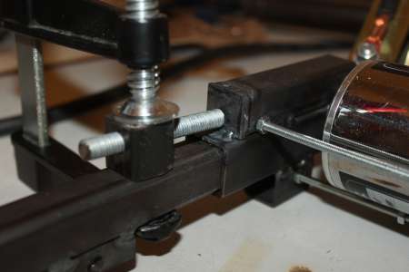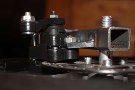 On the other side a roughly mounted steel piece limits the back angle. Later I added the same on the left side of the axle.
