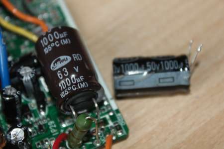 First I exchanged the 50V 100uF capacitor on the input side by an 63V equivalent.