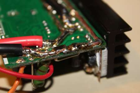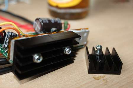 Also the heat has now to be dissipated much more. Therefore three heatsinks are mountet to the metal plate wich was originally mounted to the aluminium case.