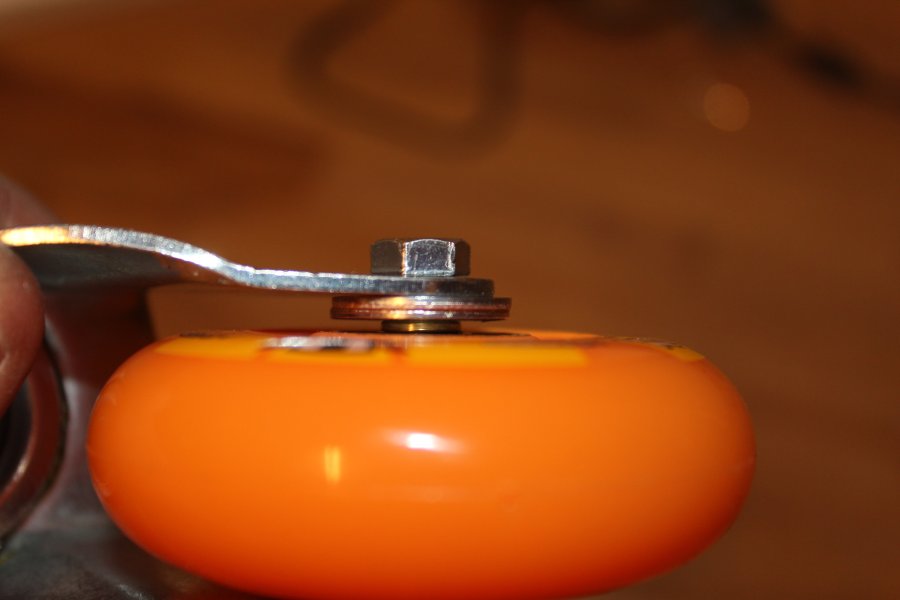 With some washers on both sides as spacer the wheels can be mounted into the steering roller frame.