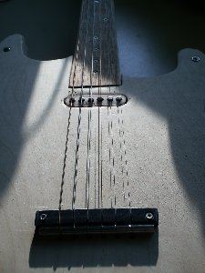 Dann hab ich noch alle Saiten aufgezogen. Dabei fiel mir dann auf, dass die Saiten viel zu weit vom Griffbrett entfernt sind.