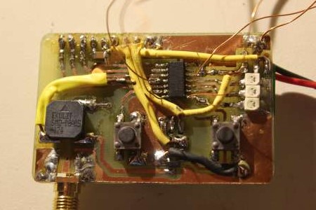 Again I used one of those cheap 5.8GHz receiver modules, but this time I used an ATTiny44 to control it over SPI. So no more dip-switching.