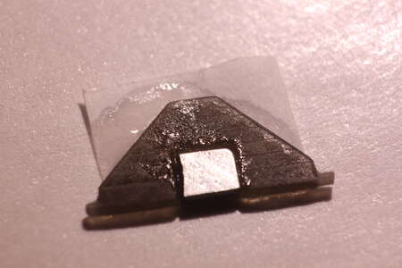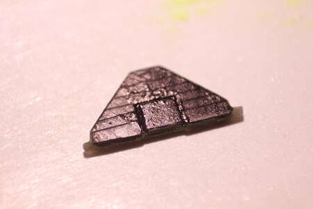 In die Aussparung musste ein sehr flacher Magnet geklebt werden. Dazu habe ich den kleinsten und dünnsten Neodym Magneten gekauft und mit Hammer und Meissel geviertelt.