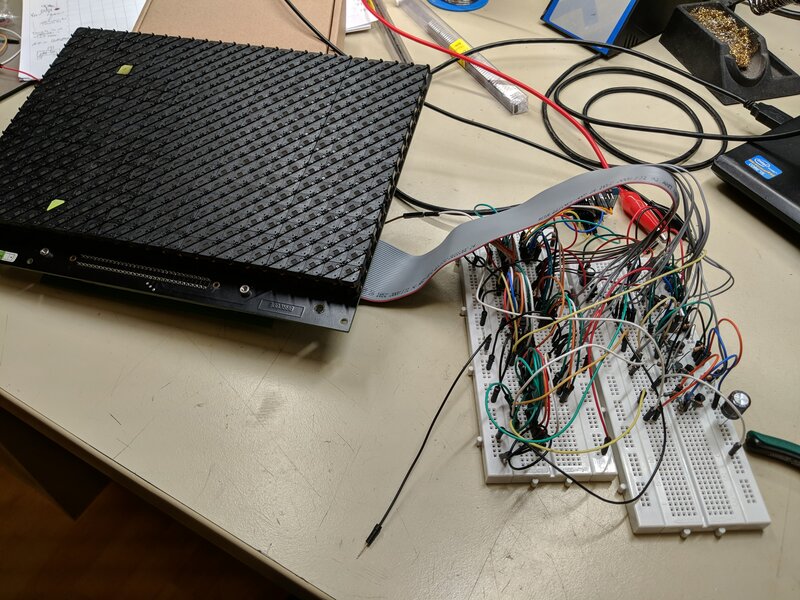Nachdem der Code soweit funktional war, dass definierte Muster nacheinander angezeigt werden konnten, wollte ich die Hardware zusammenbringen.