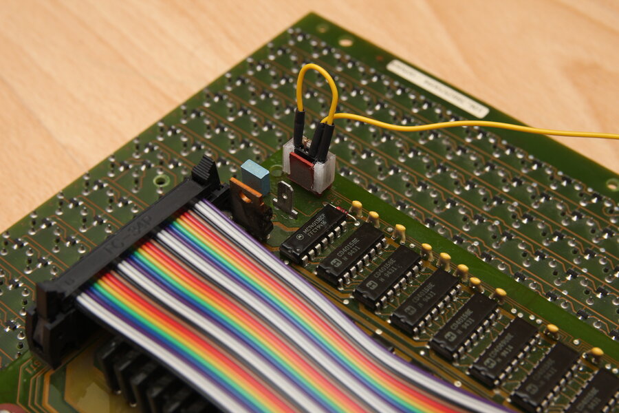 Wie beschrieben kommt auf das logisch erste Modul an den Printstecker eine Brücke, um Pin 30 des Wannensteckers mit Data In der Schieberegister zu verbinden.