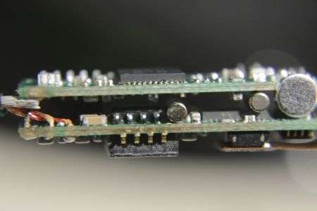Ebenso geht man bei der Linse der CM205 vor. Rechts ein Vergleich der beiden Module und Linsen (CM205 [unten] und 808 #16 [oben]).