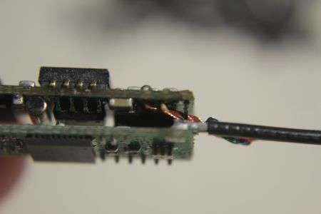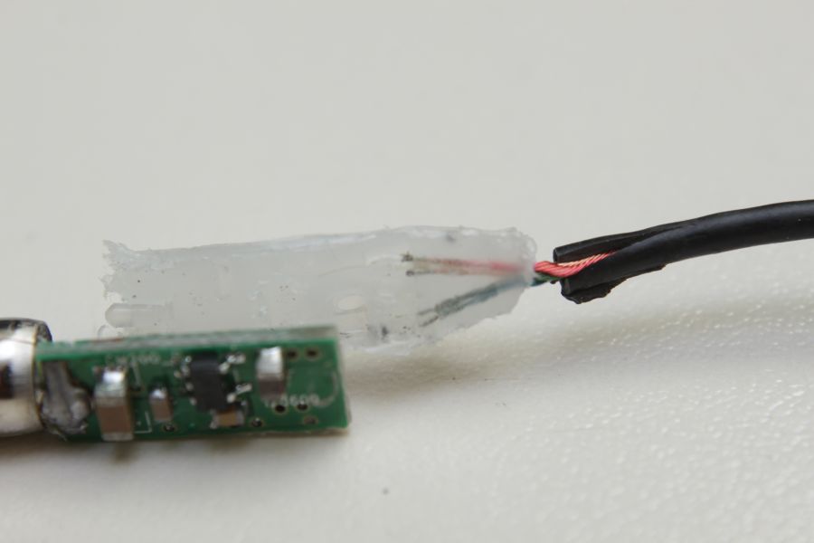 Vorsichtig dran löten und das wars auch schon. Der Heißklebetropfen ist dringend notwendig, da das Lot nicht so ganz feste hällt.