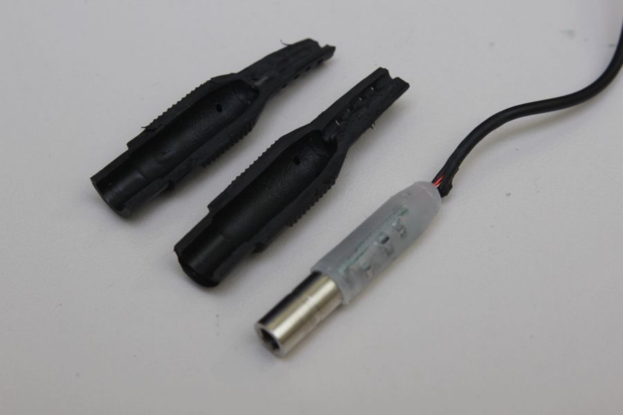 In dem Stecker befindet sich ein 3,3V Stepdown Schaltregler, dieser wird weiterhin benötigt und muss aus dem Plastikguss herausgeschnitten werden.