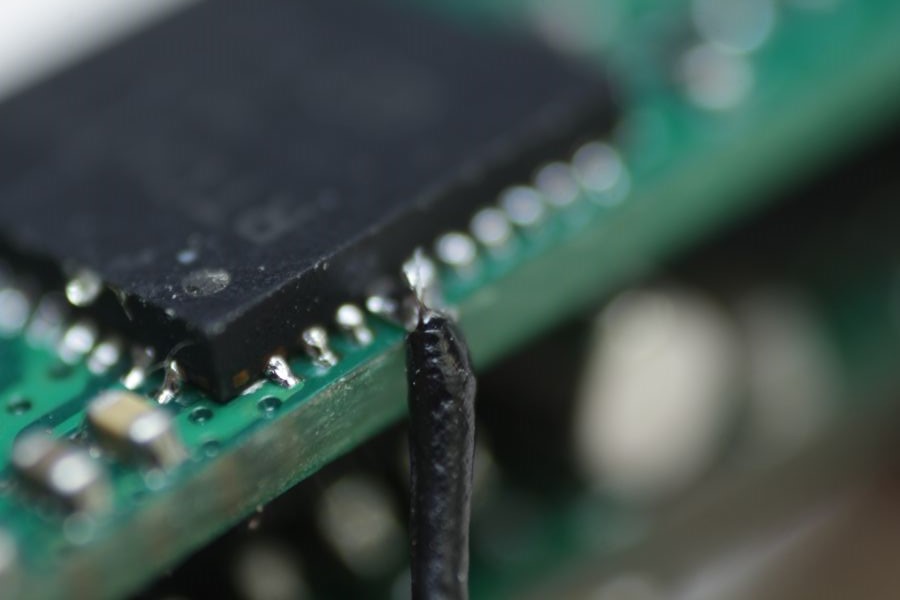 Eine sehr dünne Litze ist dazu nötig und wird direkt an den RTC6705 gelötet.