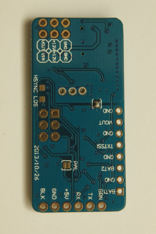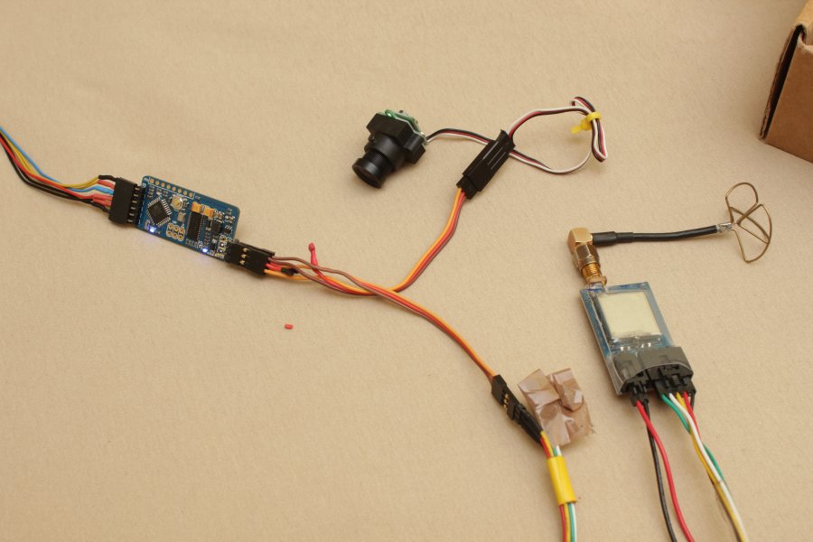 Hobbyking Minim OSD), sodass Anschlüsse für RSSI und Akkuspannung an der Seite zugänglich sind.