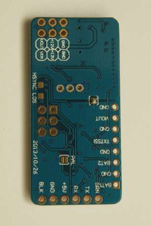 Da die 5V Lötbrücke auf der Oberseite und die Massebrücke auf der Unterseite bereits geschlossen waren, bekommt der MAX7456 seine Versorgungsspannug vom Multiwii (bzw dem FTDI Adapter).