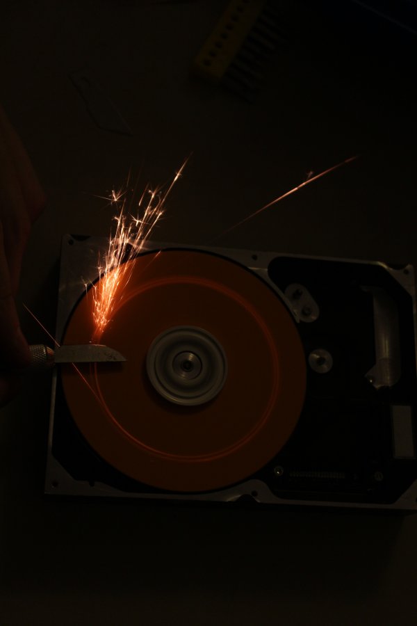 Be careful working with the drive platters. Some are made out of aluminium, others can be metall coated glass discs.