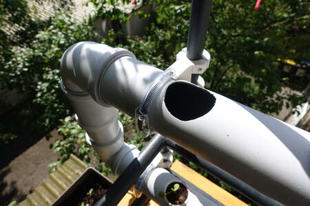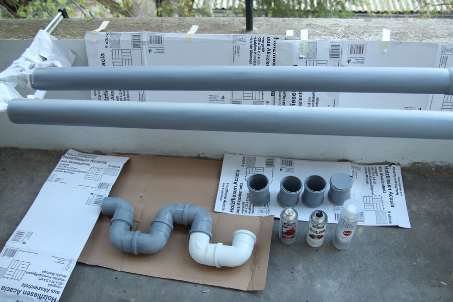 Also wurde es HT-Rohr DN 75. Grau macht sich aber nicht so schön auf dem Balkon und damit sich die Rohre im Sommer nicht zu stark erwärmen ist weiß eh die bevorzugte Farbe.