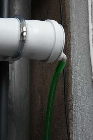 Die Steigung der Rohre ist auf 3% ausgemessen. Das Wasser sollte so langsam wie möglich fliessen, jedoch keinesfalls stehen können.