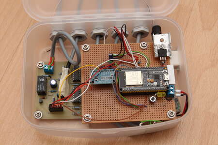 Die Elektronik hat in einer Transparenten Butterbrotbox Platz und muss nur vor leichtem Regeneinfall geschützt sein.