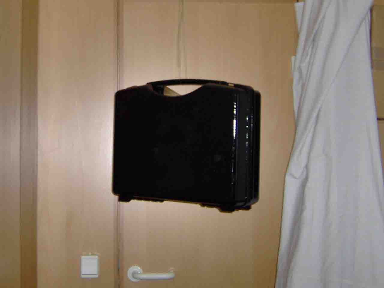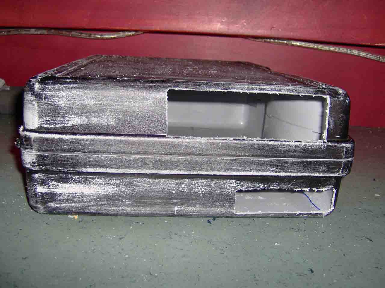 Jetzt musste ich den Koffer noch ein bisschen von innen anspray´n damit es dort nicht zu hell-grau aussieht: