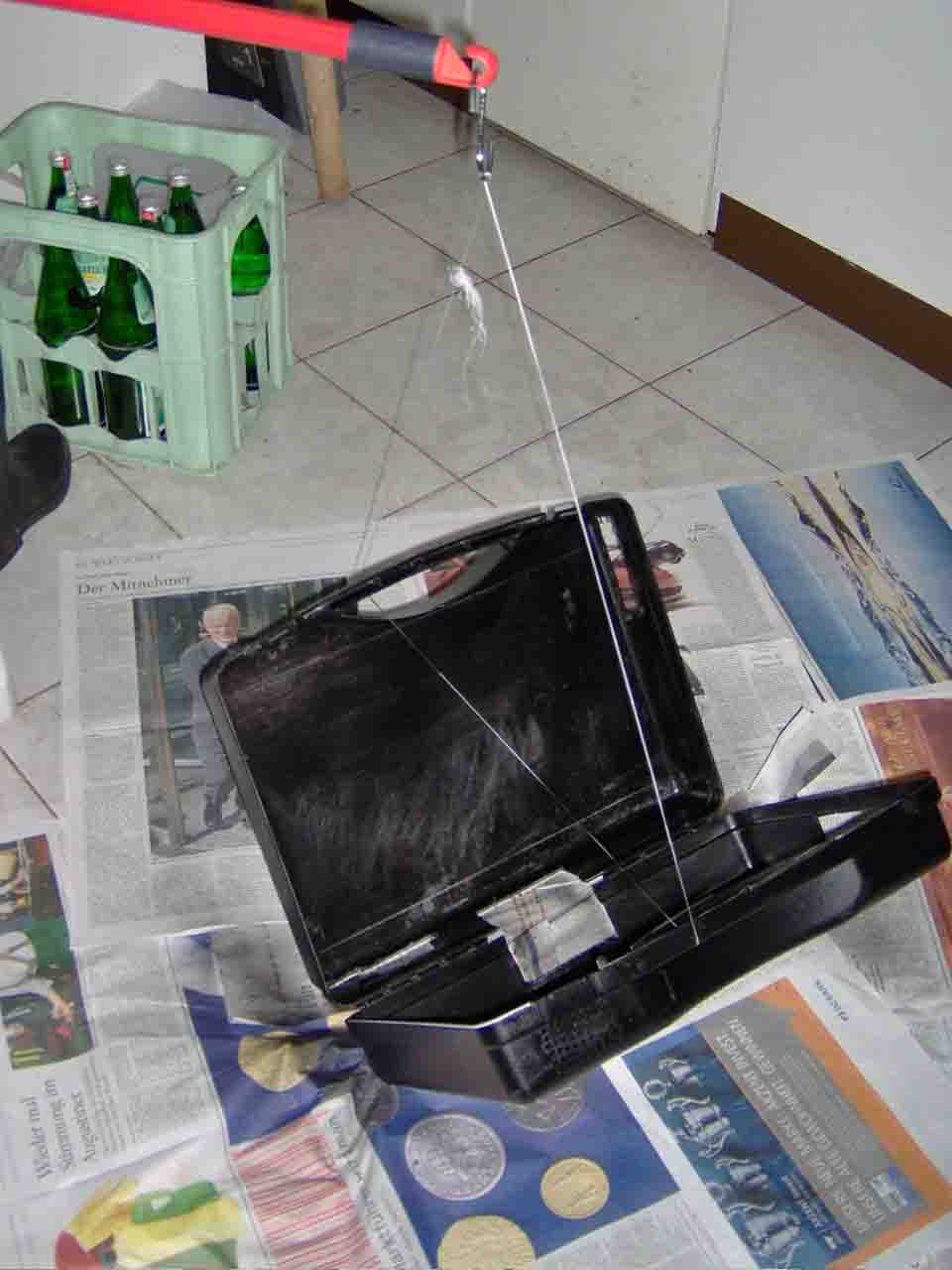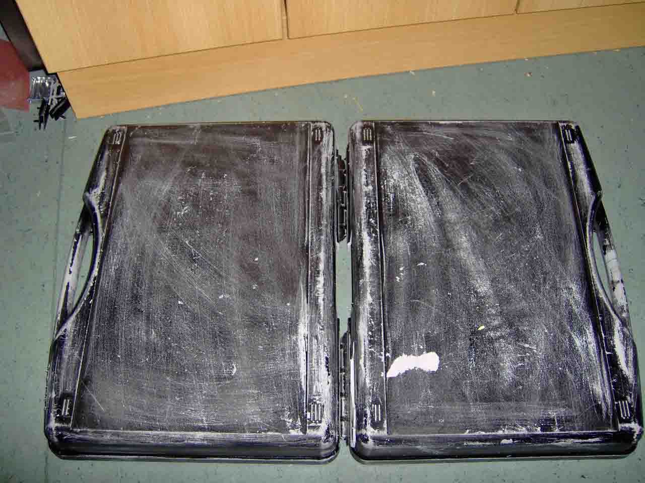 Nun hab ich nochmal den gespray´ten Koffer aufgeraut und danach wieder neu angespray´t, weil die Farbe nicht richtig hielt: