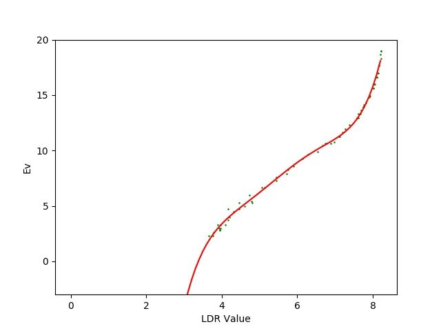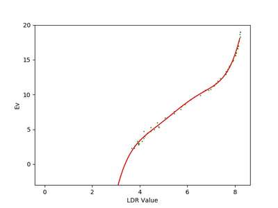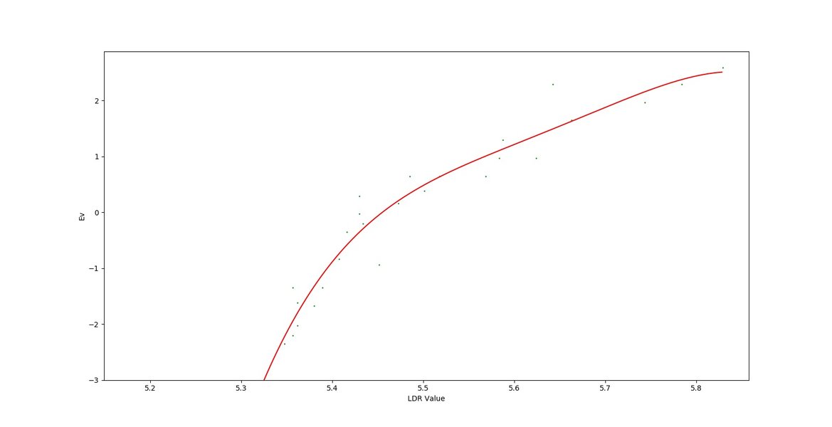 Der BH1750 Sensor gibt bereits die Beleuchtungsstärke in Lux zurück, welche sich für Werte >2 durch "log (lux/2.5) / log (2)" in Ev umrechnen lassen. Da dieser Sensor sich hinter einer Acrylglasscheibe befindet musste ich den Korrekturfaktor zuvor bestimmen und mit einbeziehen.