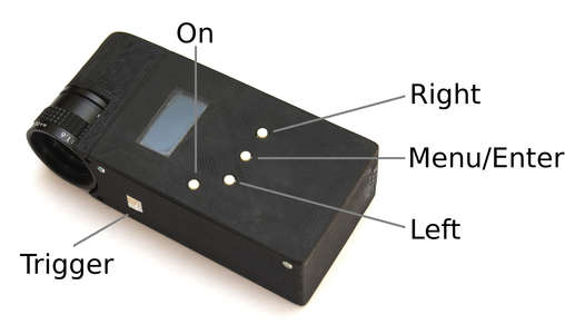 Der Trigger-Taster an der Vorderseite erfasst bei betätigen den aktuellen Lichtwert (Spot oder Incident). Dieser wird durch einen Pfeil im oberen Teil des Displays angezeigt. Minimale und Maximale Werte werden bei mehrfacher Betätigung durch einen Balken unterhalb der Skala angezeigt (
