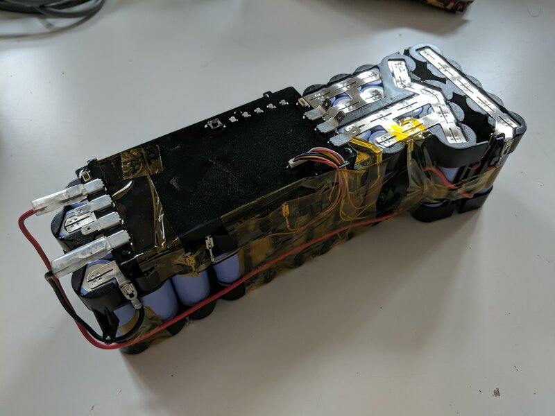 Just about 72 cells fit in the inside which makes for a battery pack with 12 in series and 6 paralleled each.