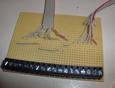ich mich dazu überwunden, die 5 Ein- und 8 Ausgänge (+ einige Massen) auf einer Platine mit Schraubklemmen zu verbinden.