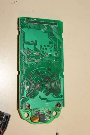 Hier der Blick ins innere. Das Bild half mir sehr, beim anschließenden Zusammenbauen. Hier auch noch das Bild der Platinenrückseite. Die Platine muss für den Mod allerdings