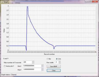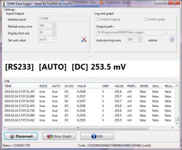Die Werte werden 3 mal pro Sekunde vom Multimeter gesendet, mehr ist nicht drin. Es lassen sich also nur Langzeitbetrachtungen durchfüren.
