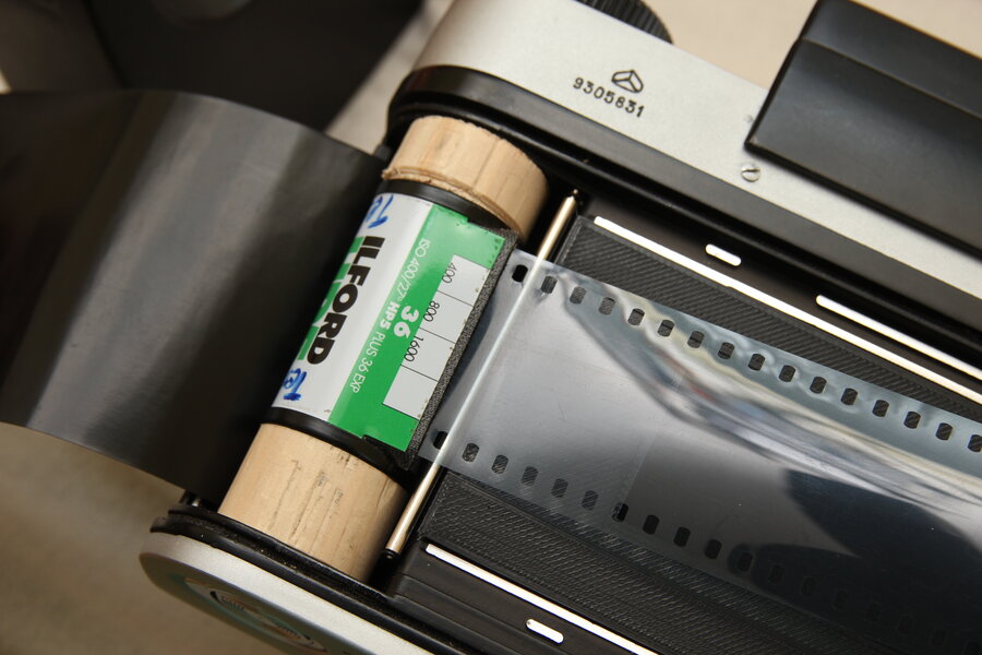 Um nicht gutes Filmmaterial zu verschwenden hab ich einen alten unbenutzbaren Film in einen leeren Kanister eingespult und wie beschrieben in die Kamera eingelegt.