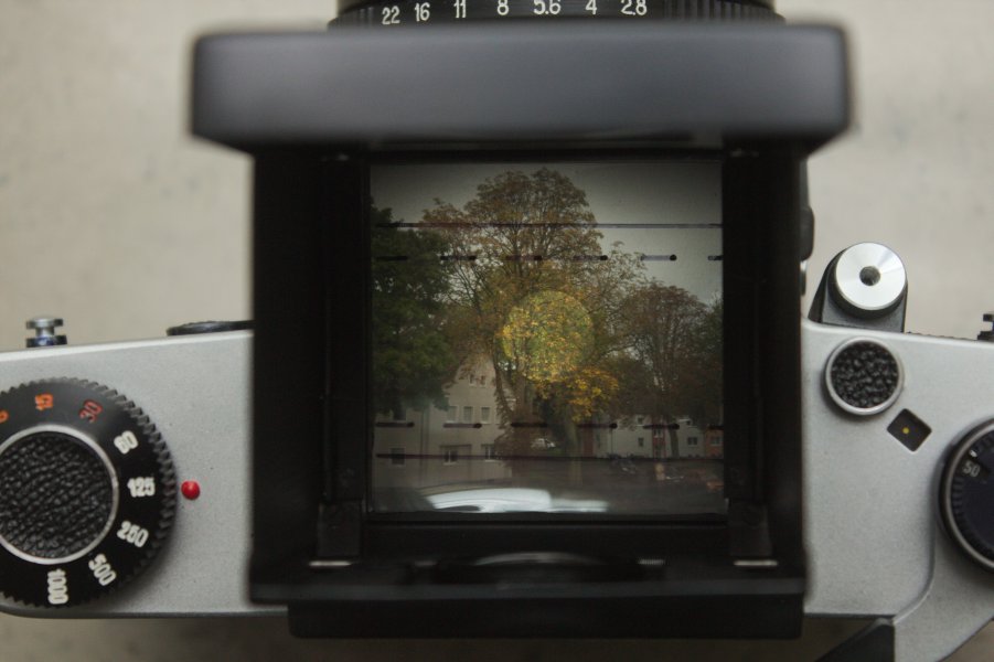 Den Prismensucher der Kiev-60 mit einem Volna-3 2.8/80 hab ich daher auf ISO 50 gestellt.