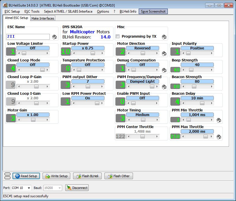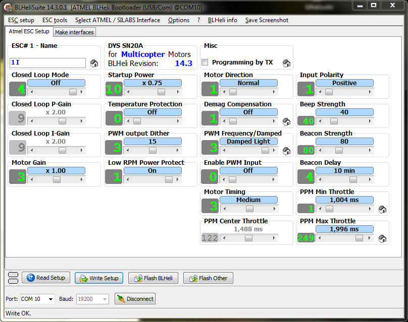- Features: RX_PPM, VBAT, MOTOR_STOP