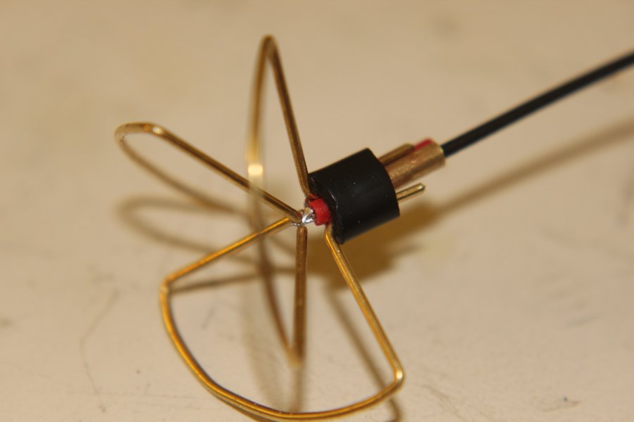 Wie ich bald merkte, war die selbstgelötete Stummeldipolantenne eher kacke und versteckte sich immer hinterm Lipo, was dem Empfang nicht gerade gut tat. Also wieder eine Cloverleaf an das dünne Coaxkabel mit U.FL am andern Ende.