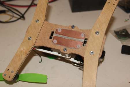 Bei diesem Copter hab ich mich für zwei einzelne Topplates, je für Lipo und Mobius entschieden. Die Vordere ist zudem etwas nach oben geneigt.