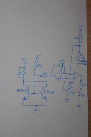 Der Operationsverstärker verstärkt mit einem Faktor von knapp 70. Da der Shunt, sowie die anderen Widerstandswerte nur geschätzt sind braucht es noch ein Poti zwischen Opamp und LM3916, um den Pegel etwas einstellen zu können.