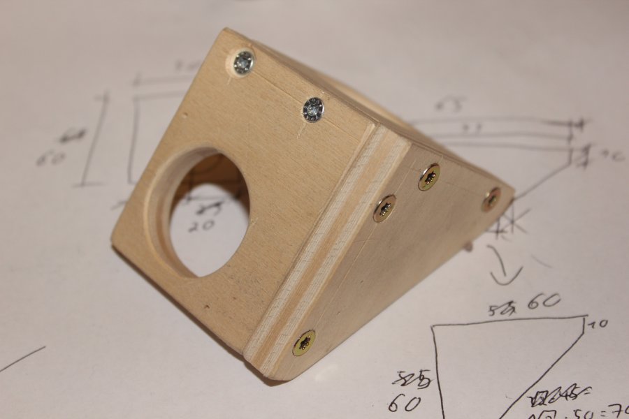 With the goal to reduce the overall size of the cutterhead and to minimize the length of the cutting needle I started building a new case. The holes have a diameter of 30mm on which the tweeters are going to be mounted from the outside.