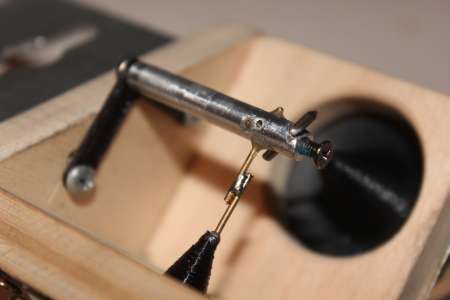 Now I was able to carve some more. The needle used here is a 1.5mm tungsten anode ground to a 70° tip. As always I used 45rpm with a CD. A 5 minute long track needed a feedrate of 36mm/5min = 7.2mm/min to fit on a single CD.