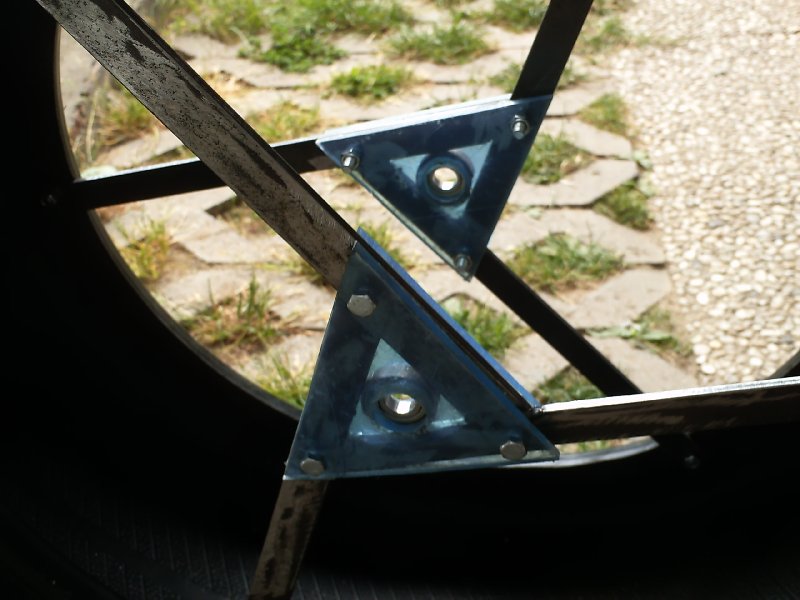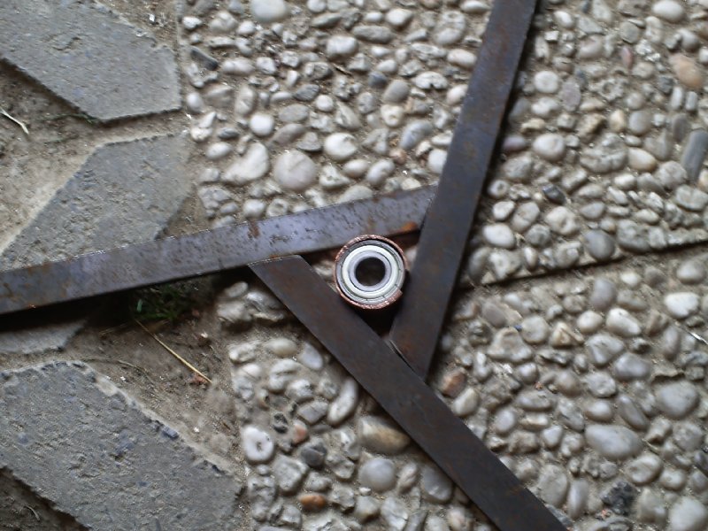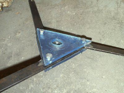 Die Kugellager sollten von jeweils zwei optisch ansprechenden Konstruktionen, aus im Dreieck angeordneten Stahlstangen, getragen werden.