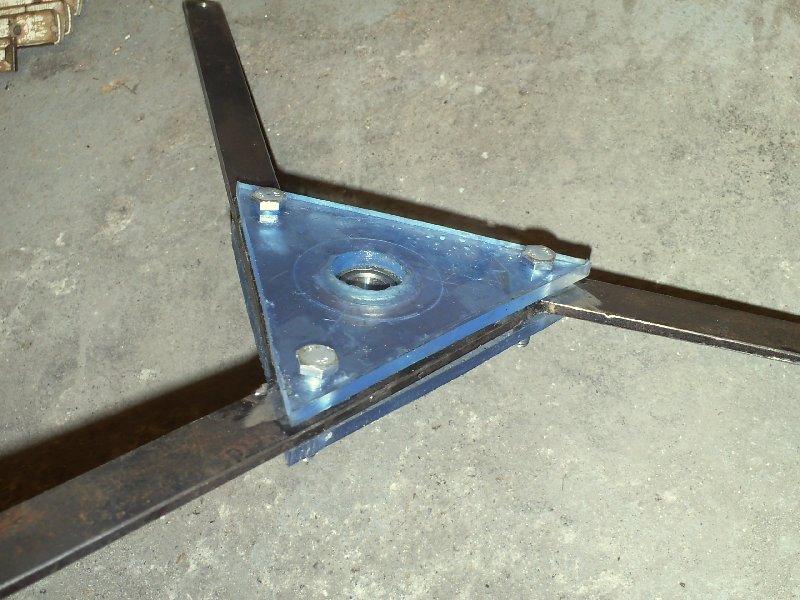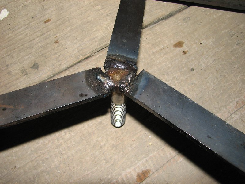 Im Mittelpunkt ist die Gewindeschraube festgeschweißt. Die Schweißnähte wurden selbstverständlich noch schöngeflext