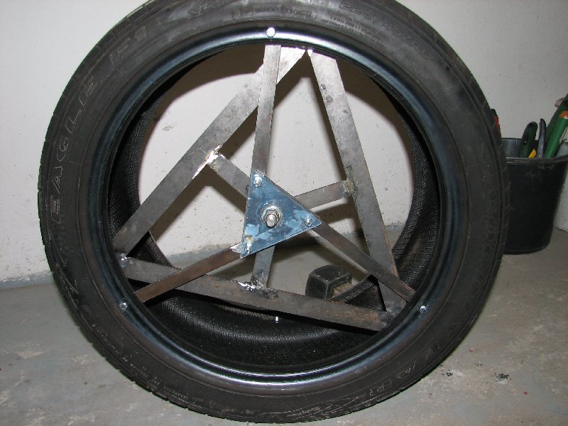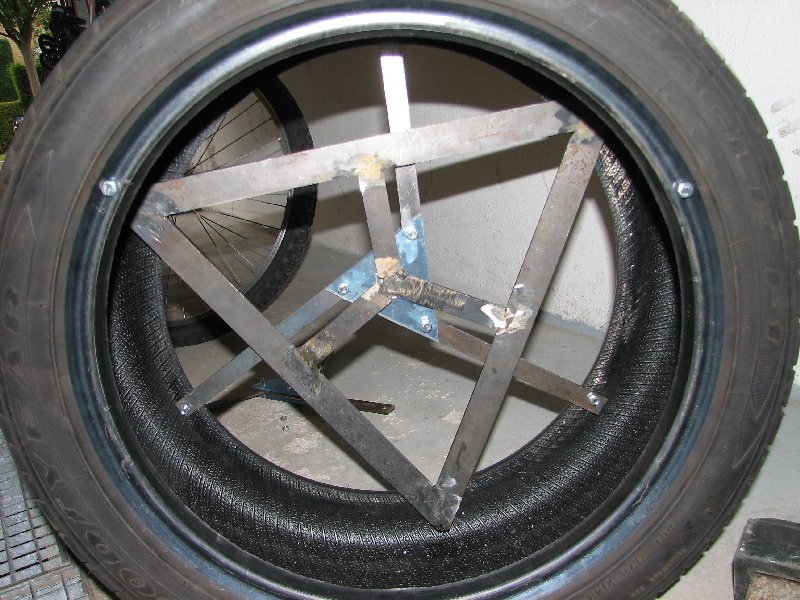 Nach unzähligen Gedankengängen sollte nun ein alter Auto-Reifen dran glauben müssen.