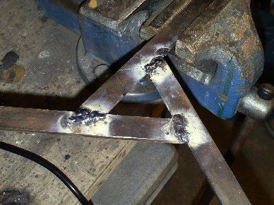 Nun fehlt noch das Gestänge auf der Vorderseite. Dazu hab ich drei Stahlstangen wie auch zuvor an eine Gewindeschraube geschweißt.