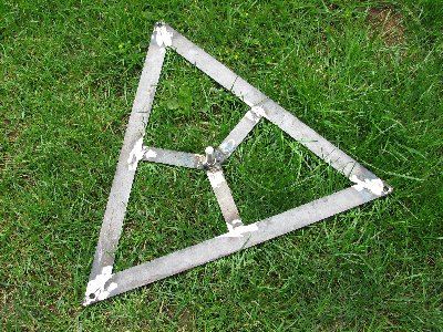 Die beiden Plexiglasdreiecke werden von drei Gewindeschrauben an den Ecken zusammengehalten.