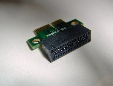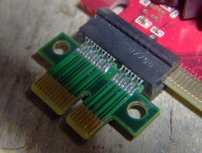 Besser war da die Idee eine PCI-e 1x Risercard (Verlängerungssteckkarte) aufzusägen.