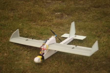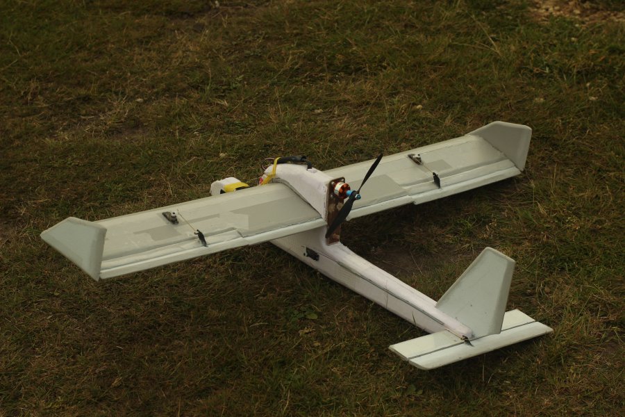 Insgesamt wurde es dann ein Easystar Verschnitt. Da ich das Teil für FPV Flüge designen wollte musste der Propeller nach hinten (Pusher). Um nicht allzuviel verkehrt zu machen hab ich mich grob nach dem Easystar gerichtet. Die Spannweite beträgt genau einen Meter (so lang war das Saarpor, aus welchem die Tragfläche gemacht ist).