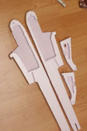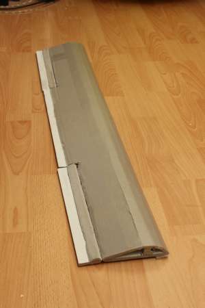 Der Rumpf besteht aus zwei Hälften Domodur (2cm dickes Dämmmaterial ausm Baumarkt).