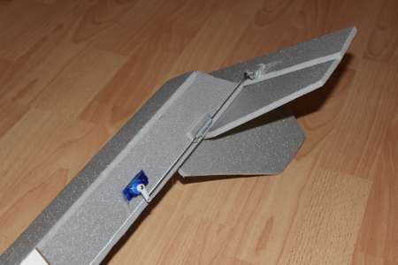 Bei dem ersten Testflug, der erstaunlich gut verlief, war mir die Rollrate nicht stark genug, wesshalb ich die Seitenruder von 3cm auf 6cm verdoppelt hab. Somit sind nun auch Rollen drin.