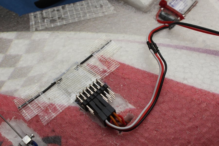Die beiden Servokabel sind durch einen kleinen Schlitz direkt vor dem Receiver nach oben geführt. Ich glaub so sauber hab ich bis jetzt noch keinen Flieger gebaut.