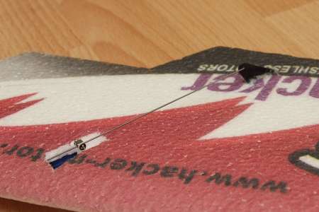 Da sich die dünnen Drähte zu den Rudern beim starken Auslenken teilweise verbiegen, hab ich sie durch ein kurzes Stück Rohr geführt.